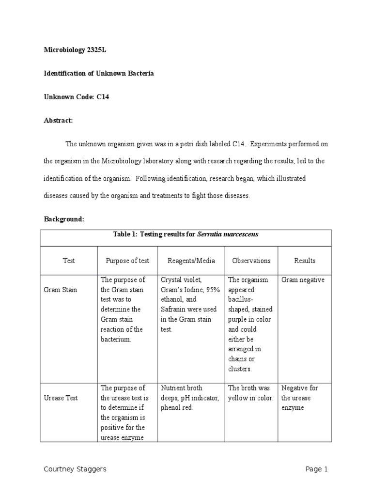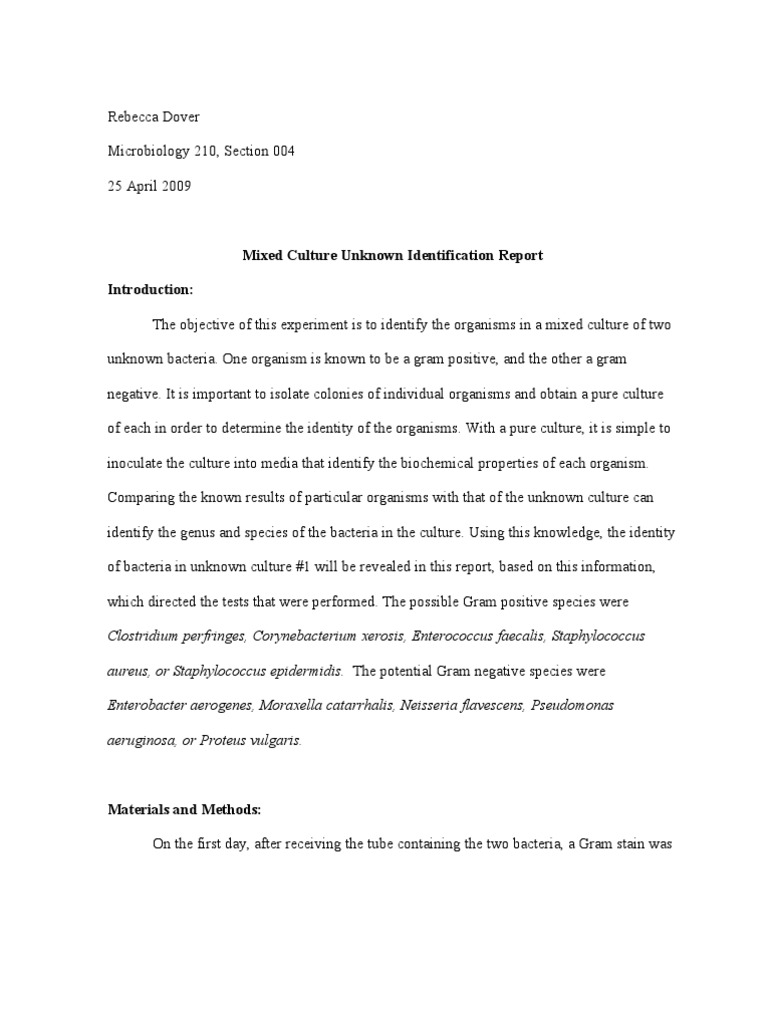 Identification Of An Unknown Bacterium And Writing Up A Report