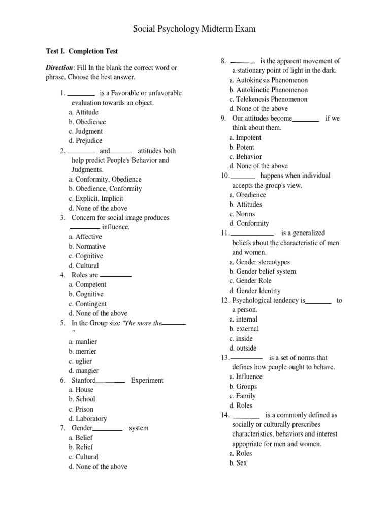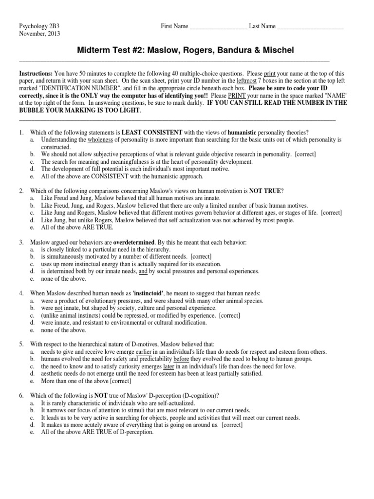 Psychology midterm test answers pdf. After 1 hour and10 minutes say. Long answer questions 3 x 10 marks 30 marks on the midterm examination you will be asked to answer 3 of the 4 long answer questions presented each worth 10 marks to a total of 30 marks. Midterm exam user magdiel brito course general psychology dl a hortensia nunez test midterm exam started 52518 1148 pm submitted 52618 142 am status completed attempt score 93 out of 100 points time elapsed 1 hour 53 minutes out of 4 hours instructions. Searching for structural elements through introspection titchener.