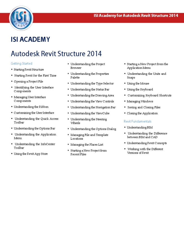 Isi Academy Outline Autodesk Revit Structure 2014 Autodesk Revit
