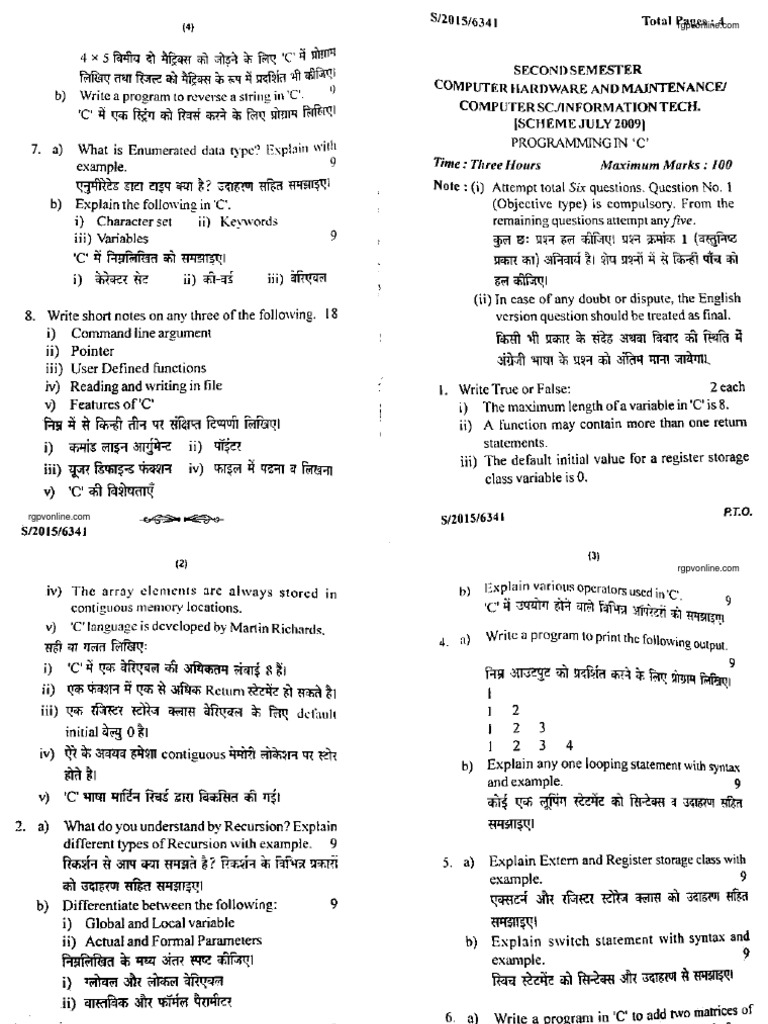Rgpv Diploma In Mom 6541 Introduction Computer 2014 Question