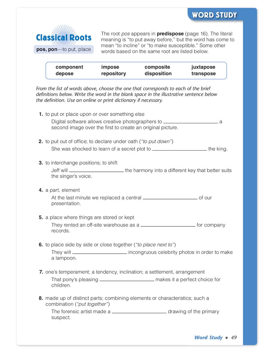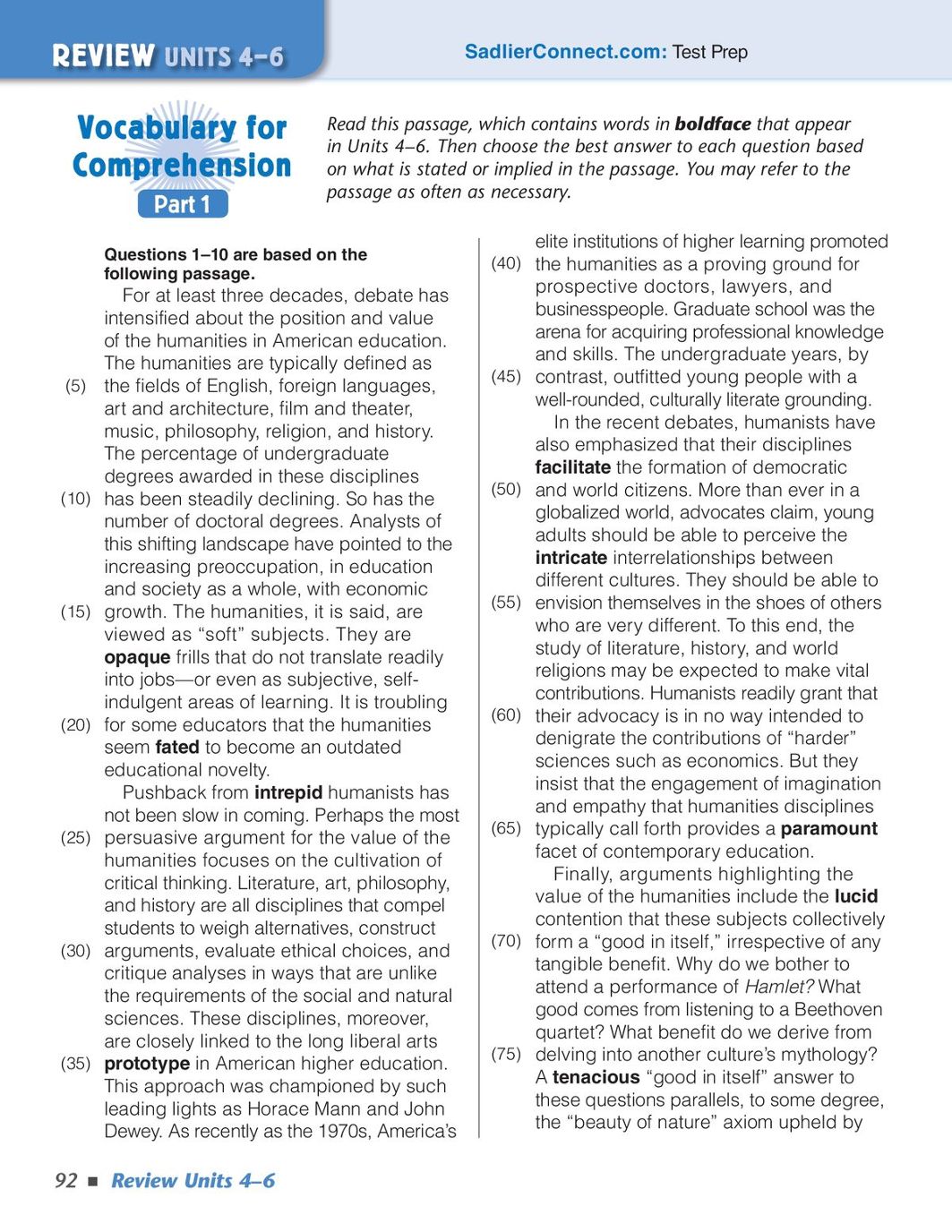 In the consumable student edition 20 academic vocabulary words are presented per unit. Vocab answers vocabulary workshop answers vocab key sadlier sadlier connect sadlier vocabulary workshop answers. Students willread new words in the introductory informational text passage including historical nonfiction newspaper editorial expository essay persuasive essay magazine articles debates and moreacquire new vocabulary through eight exercises including definitions sentence completion synonyms and.