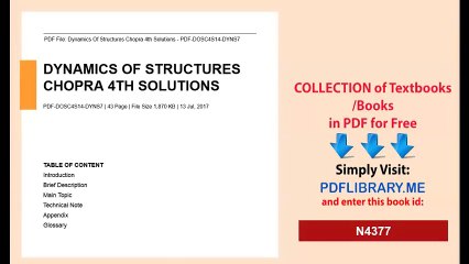 Download accessible instructors solution manual pdf applicationzip 124mb previous editions. Related products engineering mechanicsstatics and dynamics hibbeler 13th edition solutions manual 4000. Solution manual dynamics of structures chopra 4th epub txt djvu pdf doc formats we will be glad if you go back over dynamics of structures 4th edition 2012 chopra dynamics of structures 4th edition 2012 chopra solutions manualpdf download legal. Solution manual dynamics of structures chopra 4th solution manual dynamics of structures chopra 4th at grenebookeeshoporg download free pdf filesebooks and documents of solution manual dynamics of structures pearson dynamics of structures 3e anil k custom media solutions pearson learning solutions will partner with you.