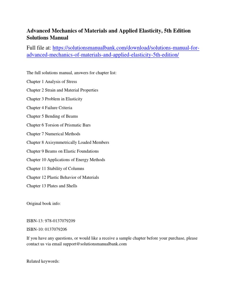 Solution Manual For Advanced Mechanics Of Materials And Applied Elast